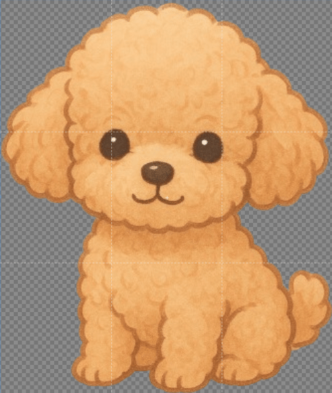 "손그림 느낌의 아이보리와 갈색이 섞인 푸들 캐릭터가 앉아 있는 모습의 이미지 파일을 만들어줘"